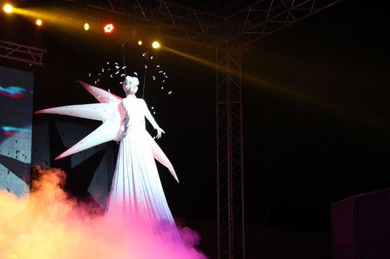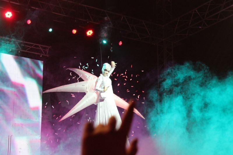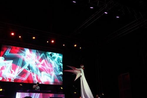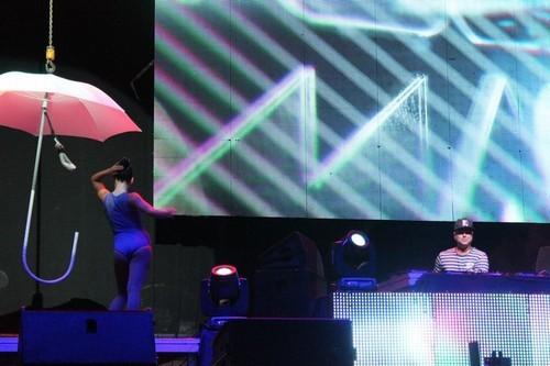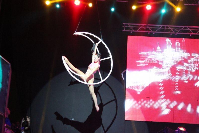 Primer plano de una gimnasta que deleitó al público durante dos canciones del concierto.