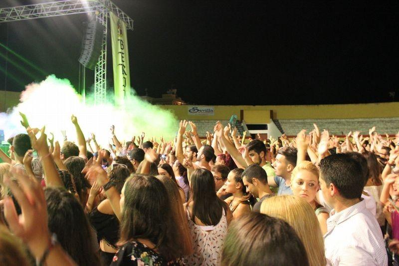 Berja acogió el pasado sábado, día 30 de julio, a amantes del reggaetón y el electrolatino procedentes de toda la provincia que se desplazaron a la Plaza de Toros de la localidad para disfrutar de todo un especialista en este género, como es Juan Magán. Con un recinto abarrotado, los presentes bailaron durante horas con los mejores temas electrolatinos. Y es que, antes de que Juan Magán comenzara su espectáculo, la Plaza vibró con dos teloneros, el grupo Baktuns y la Deejay almeriense Miriam Amat. Juan Magán no defraudó a su público, cumplió vocalmente y actuó en Berja con un bonito espectáculo muy visual. La organización del evento corrió a cargo del Ayuntamiento de Berja, que ha apostado por la calidad en sus 'Festivales', que coinciden con sus fiestas patronales. Rafa Villegas