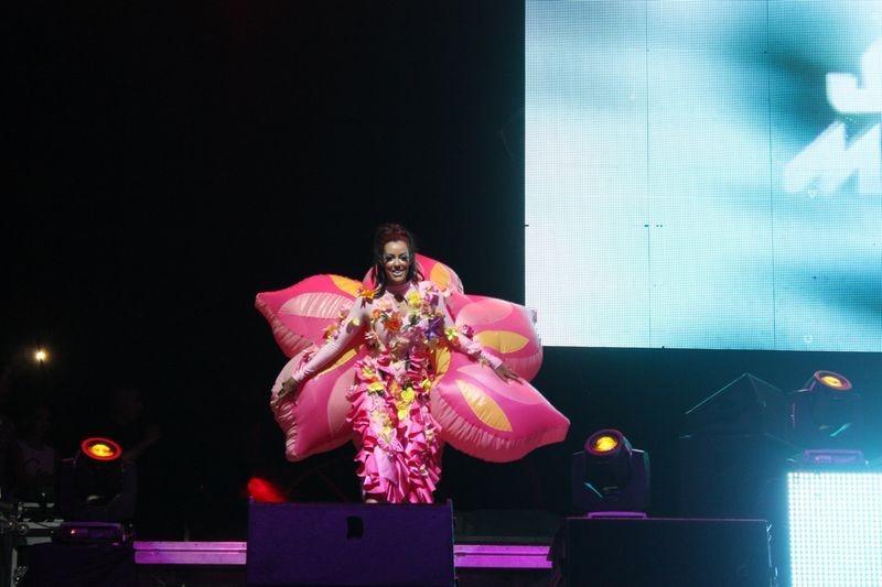 Primer plano de una de las artistas que acompañaron a Juan Magán en el escenario.