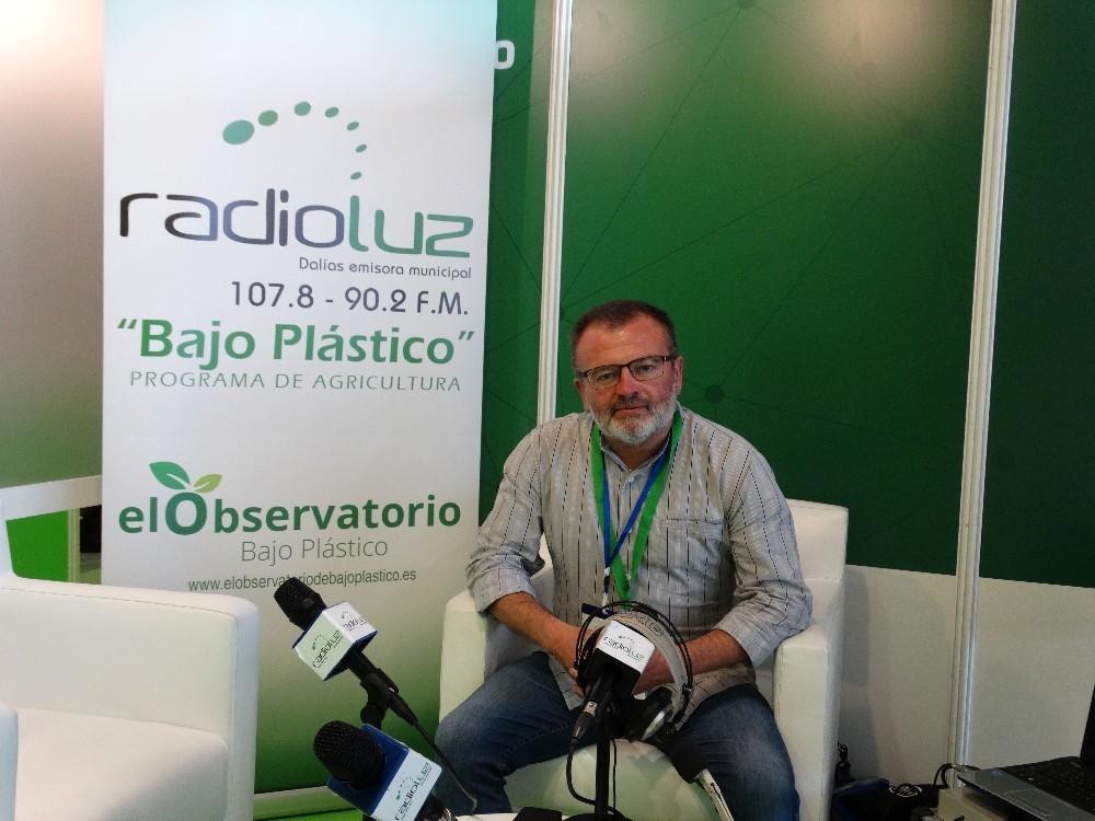 Antonio Navarro, de Radio Luz Dalías, está retransmitiendo la feria a través de su programa Bajo Plástico