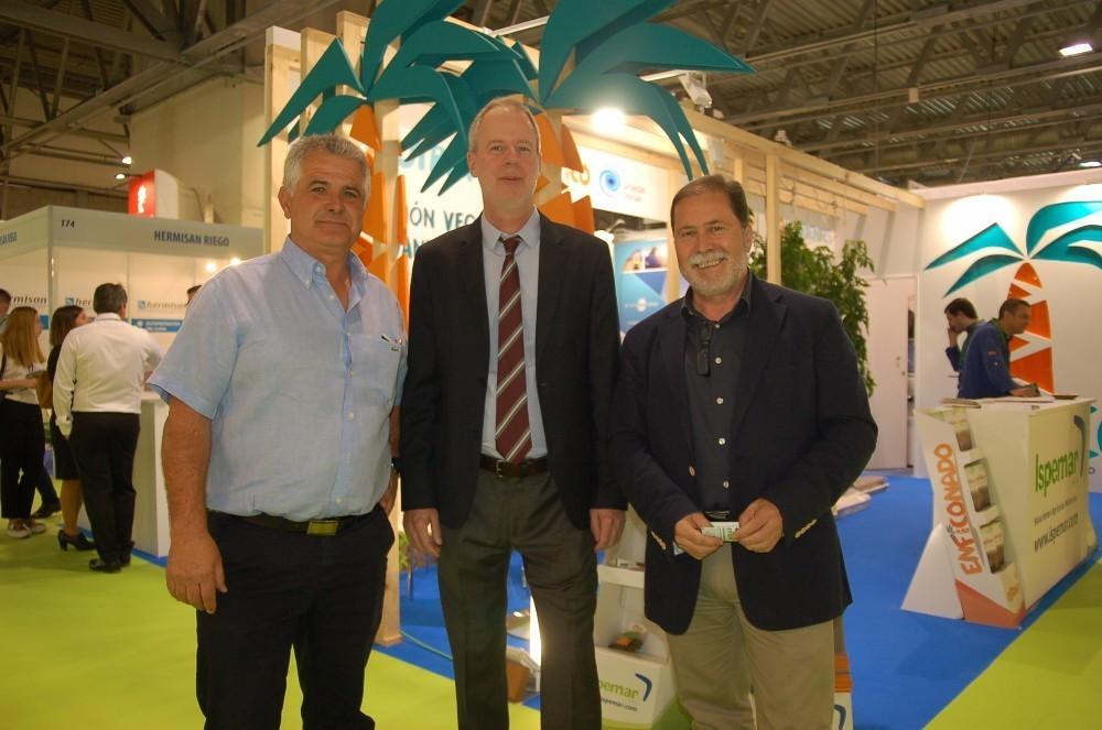 Pepe Bono, asesor de Anecoop (derecha), junto a unos amigos visitando la feria