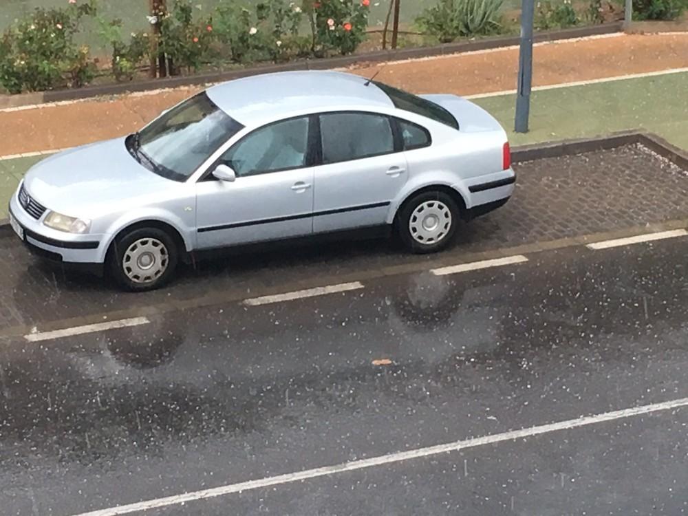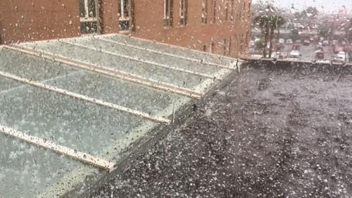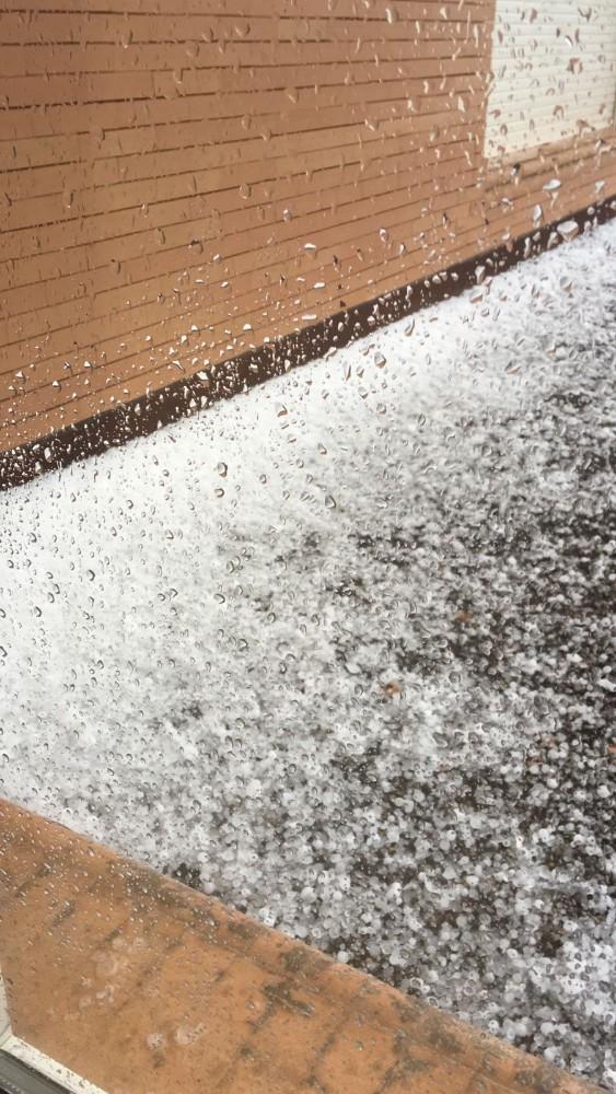 El granizo era claramente visible sobre el asfalto.