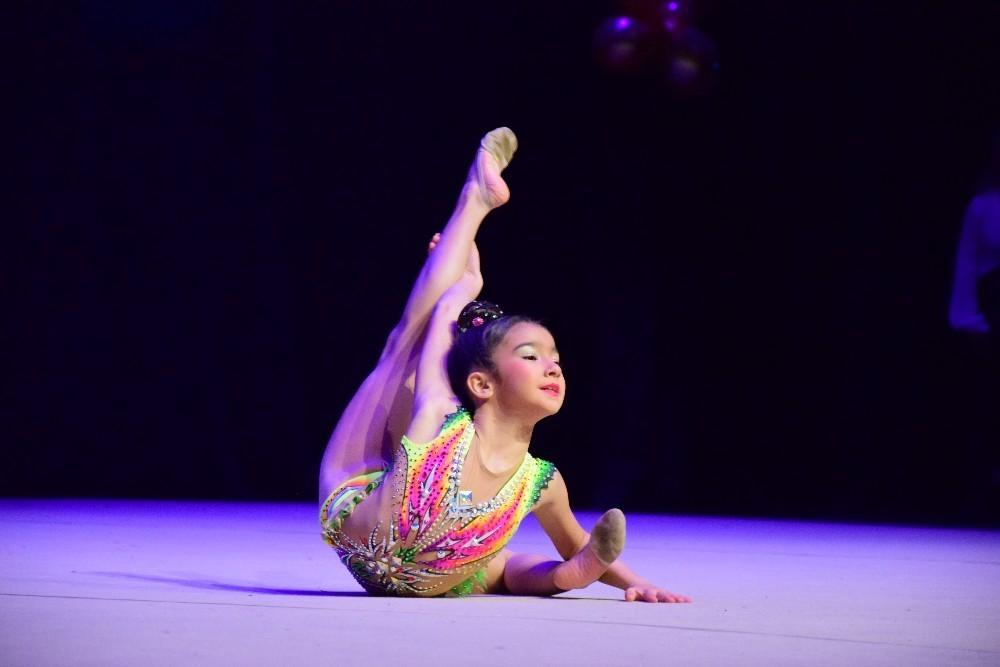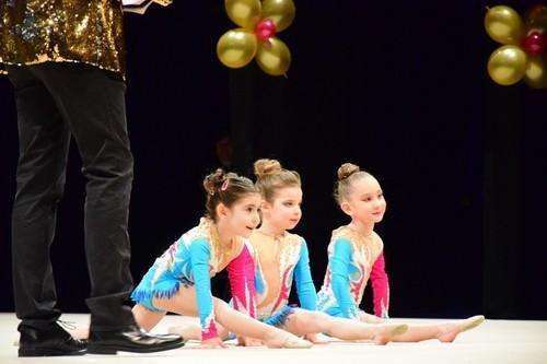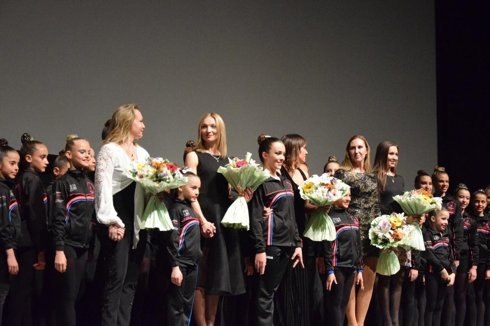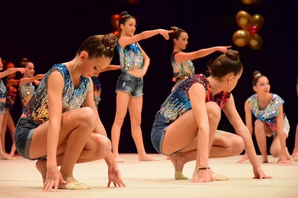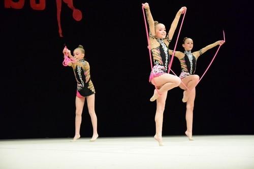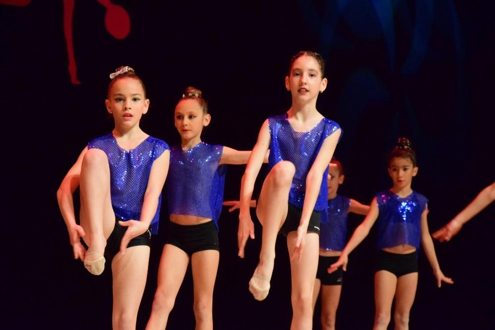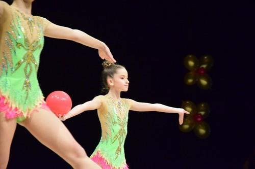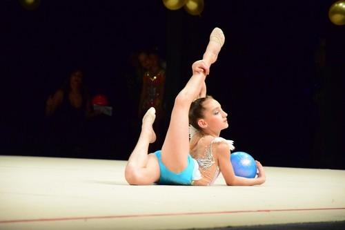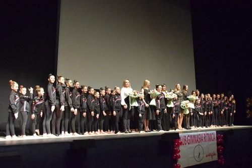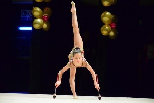 A lo largo de toda la Gala, el público quedó contagiado poco a poco por los montajes de todas las categorías del club, en conjunto e individual, con elementos característicos como mazas, cuerdas, aros y pelotas.