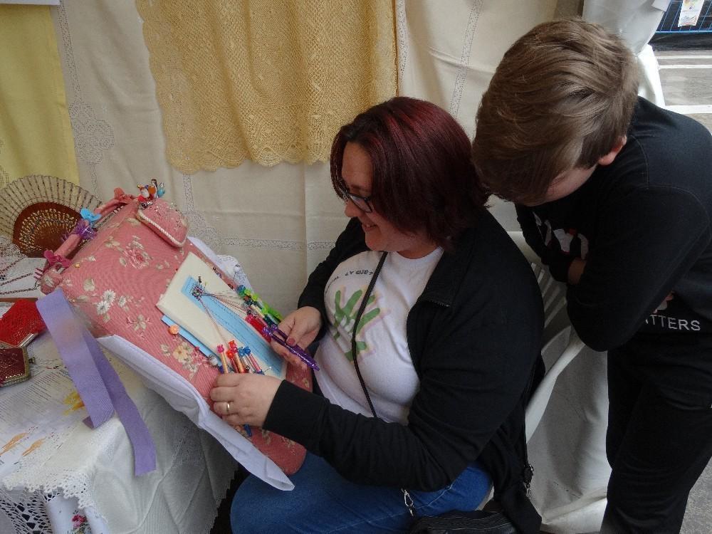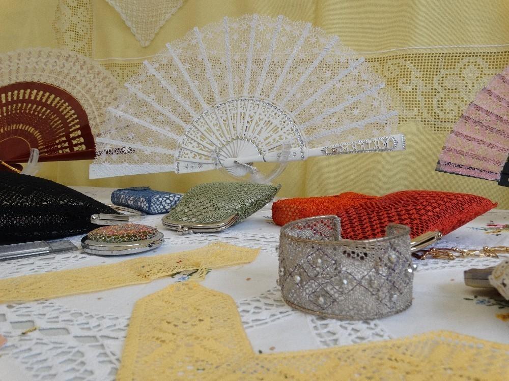 Algunos de los objetos creados por la asociación de encajeras de bolillo.
