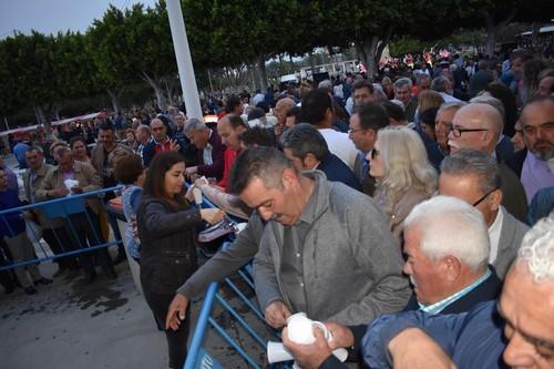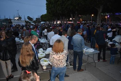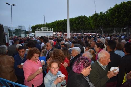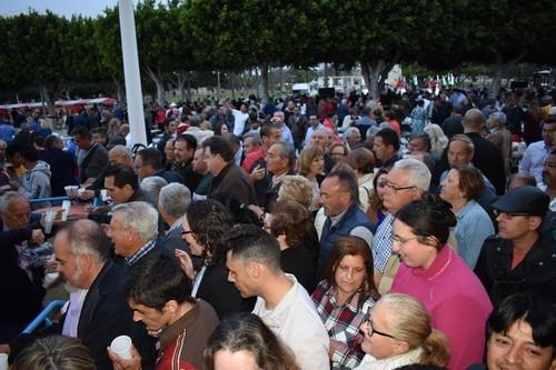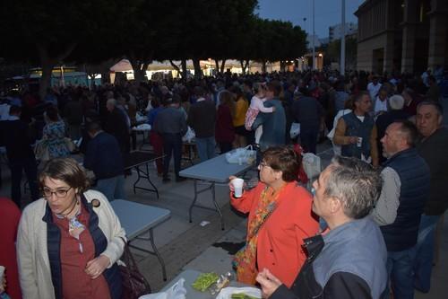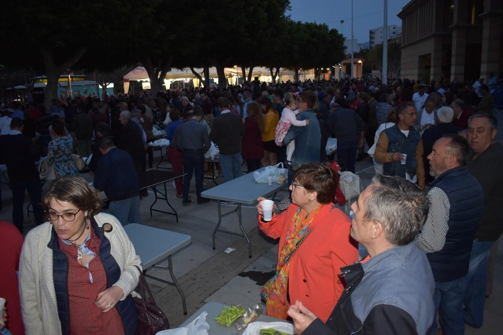 Cientos de vecinos han cumplido con la tradición en la tarde de este sábado, 21 de abril, y han acudido al parque municipal de El Ejido para participar en la degustación de habas con tocino propia de las fiestas de San Marcos. En concreto, se han repartido 1.500 kilos de habas, además de 380 kilos de tocino, 2.500 bollos de pan y 30 arrobas de vino. La cita ha contado también con la animación musical de la Asociación 'Francisco Velarde'.