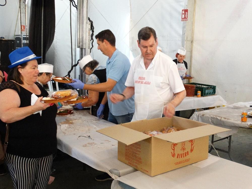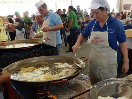 Unas 4.000 personas han formado parte este miércoles de una de las actividades más tradicionales y concurridas de las fiestas de Santa María del Águila en honor a Nuestra Señora Virgen María Madre de la Iglesia: la degustación de Huevos fritos con chorizo. Se han consumido 8.000 huevos, más de 250 kilos de chorizo, más de 500 kilos de pimientos, más de 800 de ensalada y 2.500 kilos de sandía.