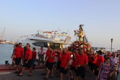 El Puerto Deportivo de Almerimar se llenó de gente el miércoles para acompañar a la procesión por las dársenas de la Virgen del Carmen. El recorrido continuó, como ya viene siendo habitual, por el mar, para volver a puerto, donde se despidió la procesión hasta el año 2015.