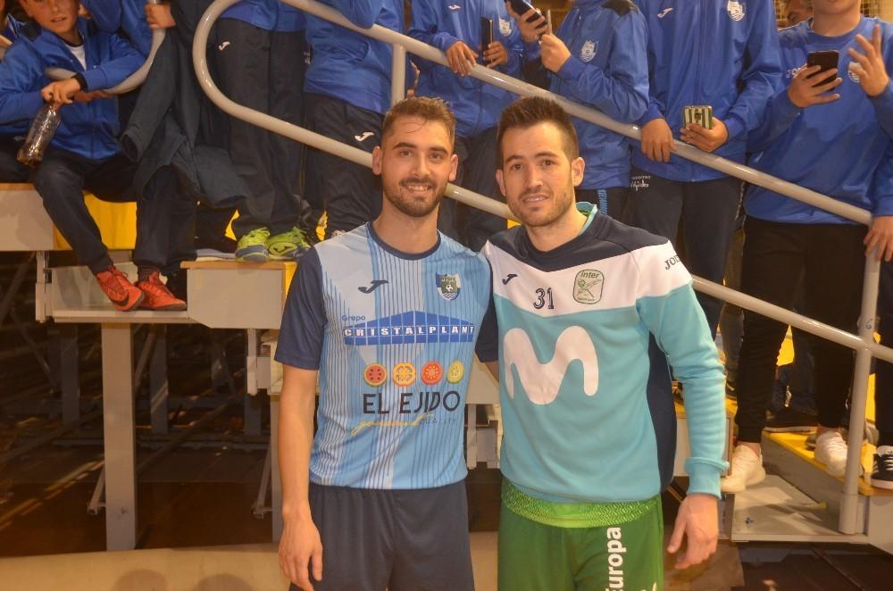 El partido amistoso entre el CD El Ejido FS y el Movistar Inter llena el Pabellón de El Ejido