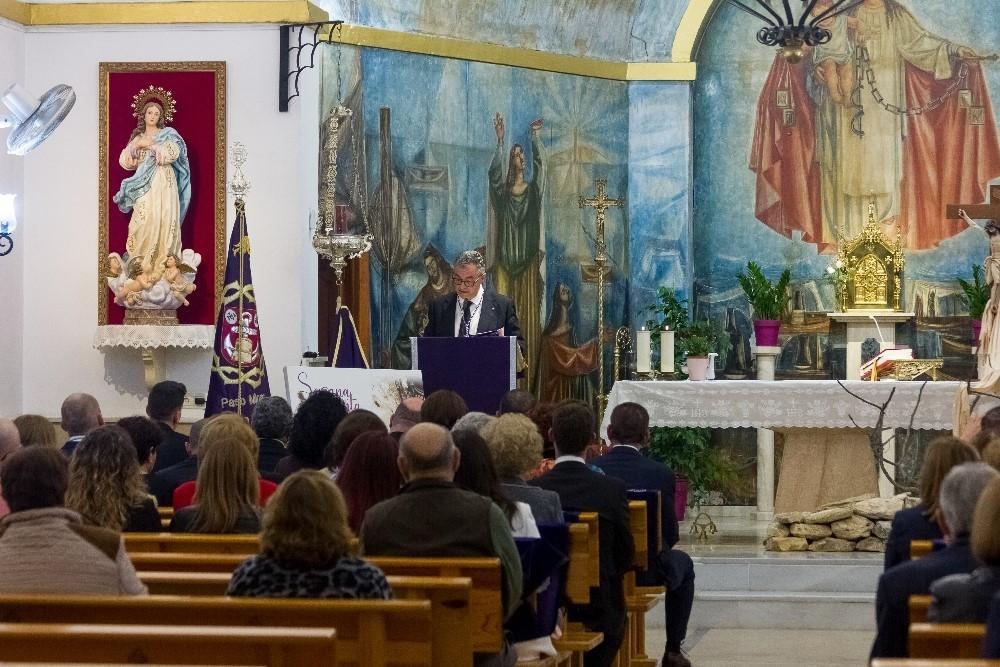 La parroquia de Balerma acogió el sábado, 9 de marzo, la lectura del pregón de la Cofradía Nuestro Padre Jesús Nazareno. Este ha corrido a cargo del jefe de Protocolo del Ayuntamiento de El Ejido, Justo Marín, y ha contado con la presencia de buena parte del equipo de gobierno con el alcalde, Francisco Góngora, a la cabeza; además del vicepresidente de la Diputación, Ángel Escobar; la parlamentaria, Rosalía Espinosa; y el presidente de la junta local, Antonio Gómez. A continuación tuvo lugar una cena de convivencia entre todos los hermanos.