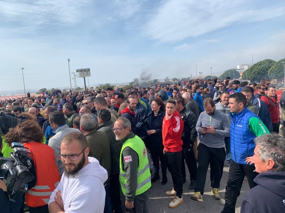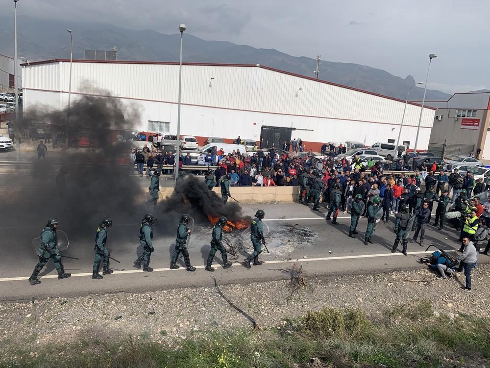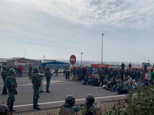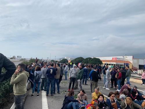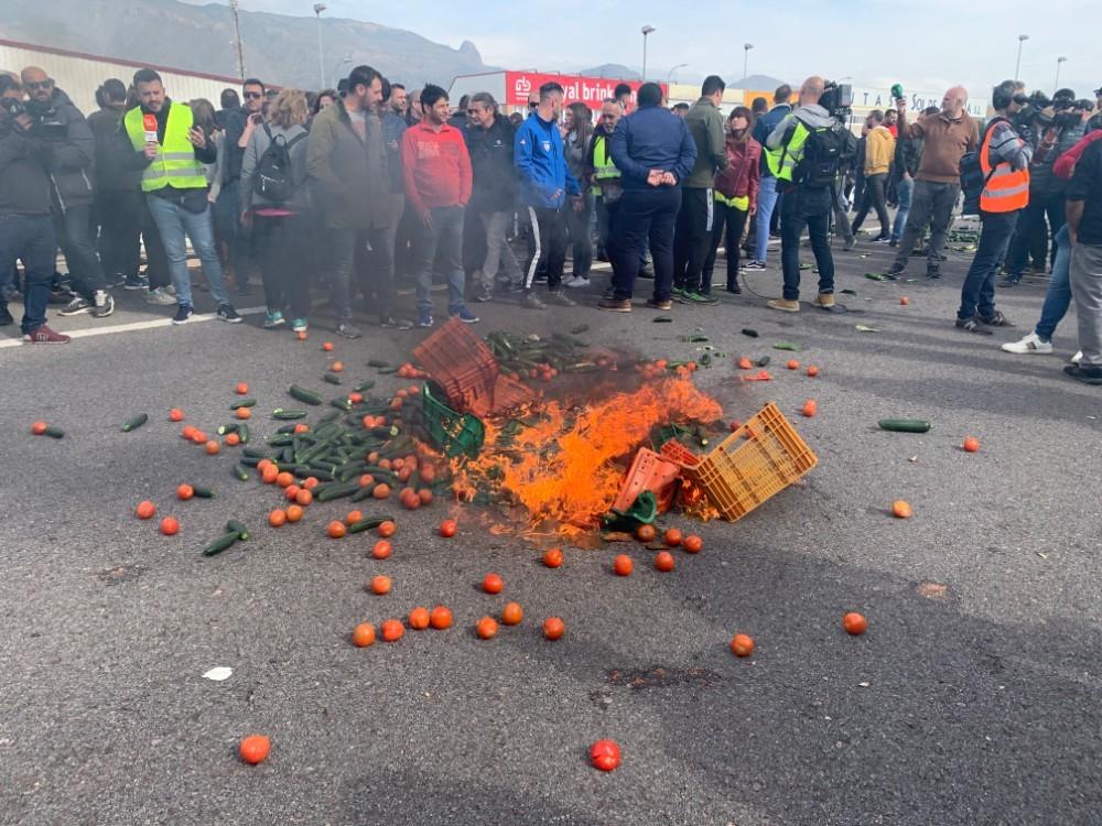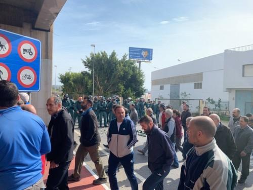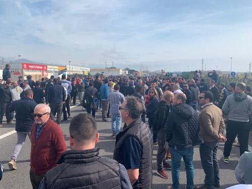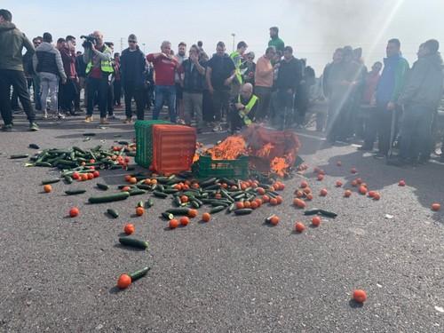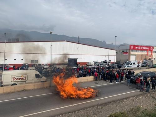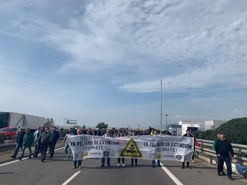 Agricultores cortan la Autovía A-7 y protestan frente a una empresa por comprar género marroquí
