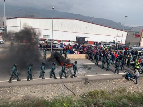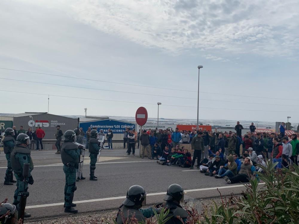 Una vez reestablecido el tráfico, por voluntad propia de los manifestantes, se dirigieron a una empresa de comercialización del Polígono a la que acusan de vender productos hortofrutícolas de Marruecos, donde se vivieron los momentos más tensos.