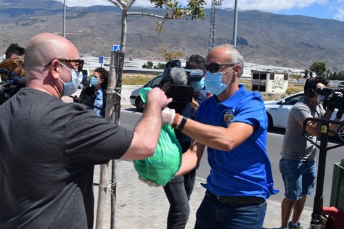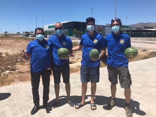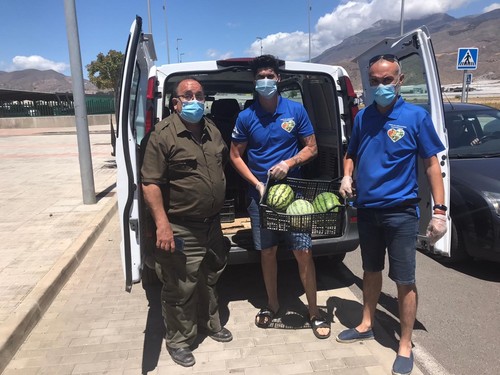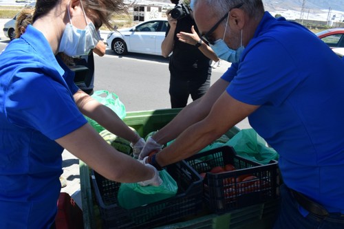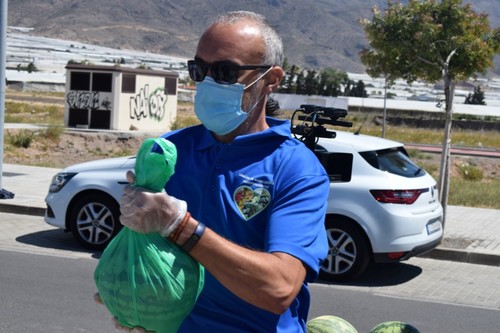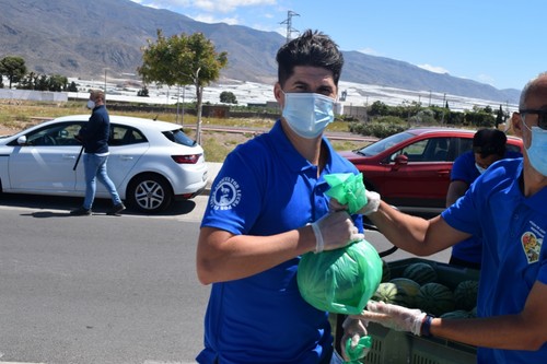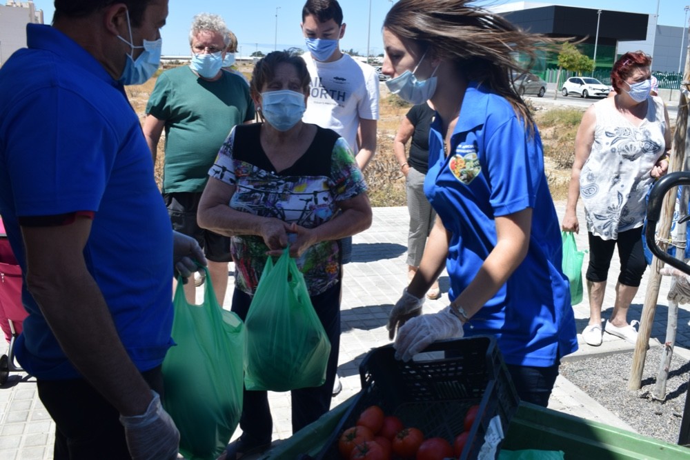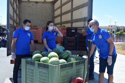 Reparto de sandías y tomates de la Unión de Agricultores Independientes en la puerta de Mercadona