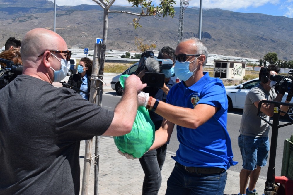 La Unión de Agricultores Independientes ha realizado este acto de protesta por los bajos precios que tienen estos productos. En conjunto con los representantes de la asociación de Granada, la UAI ha donado parte de los productos al comedor social Regina Mundi.