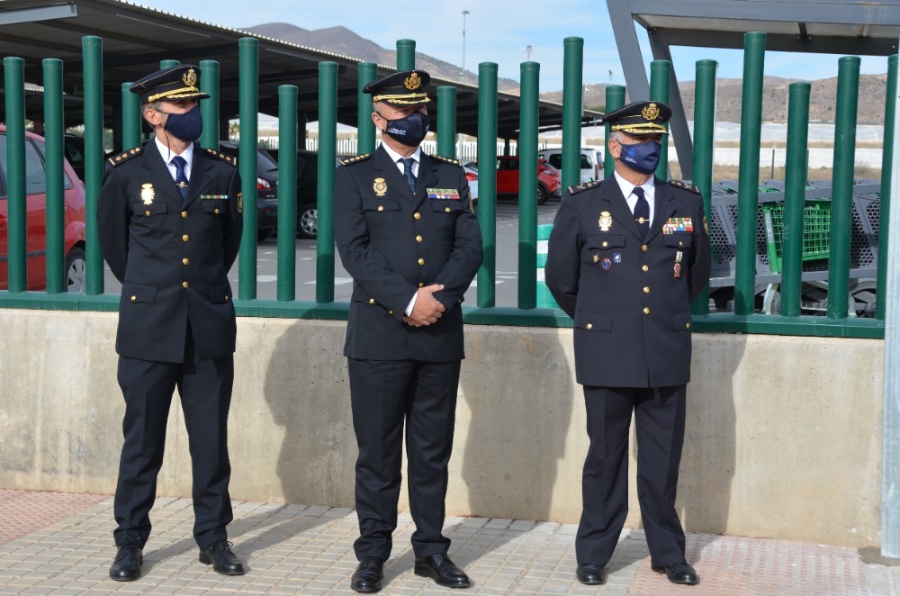 El jefe de la Jefatura Superior de Andalucía Oriental, José Miguel Amaya; el comisario provincial, Rafael Madrona; y el nuevo comisario de la Policía Nacional de El Ejido, Rafael Rodríguez.