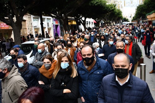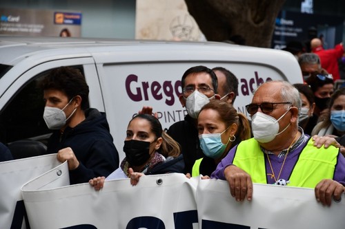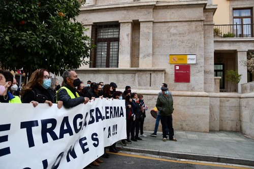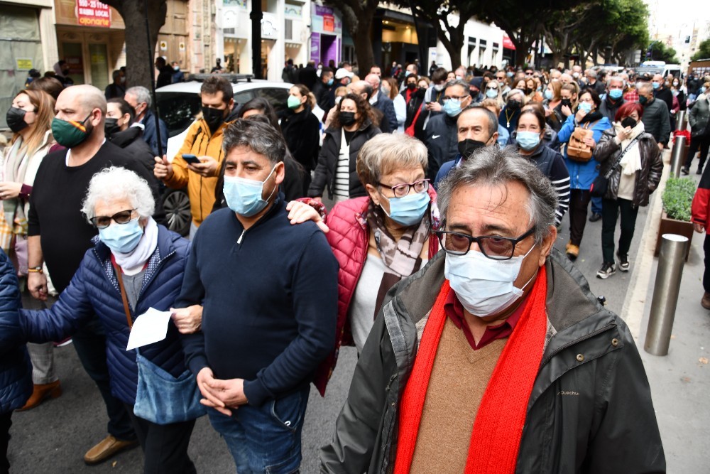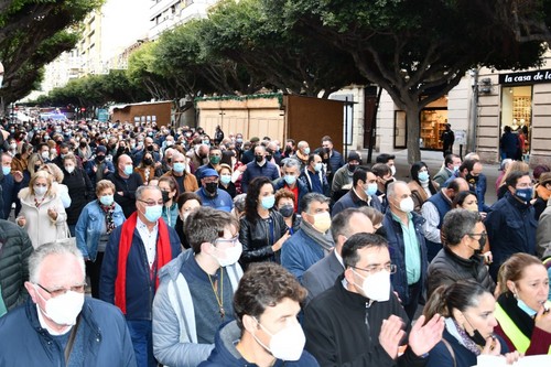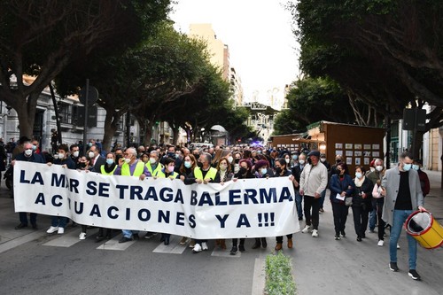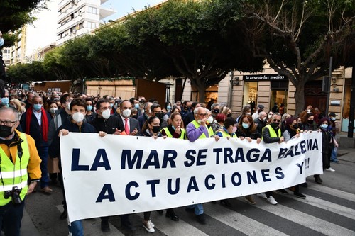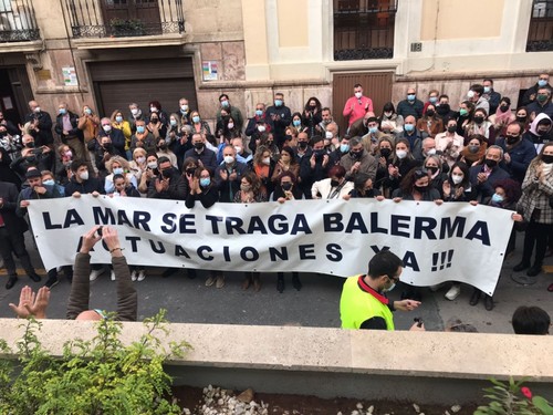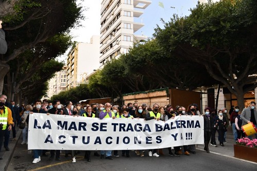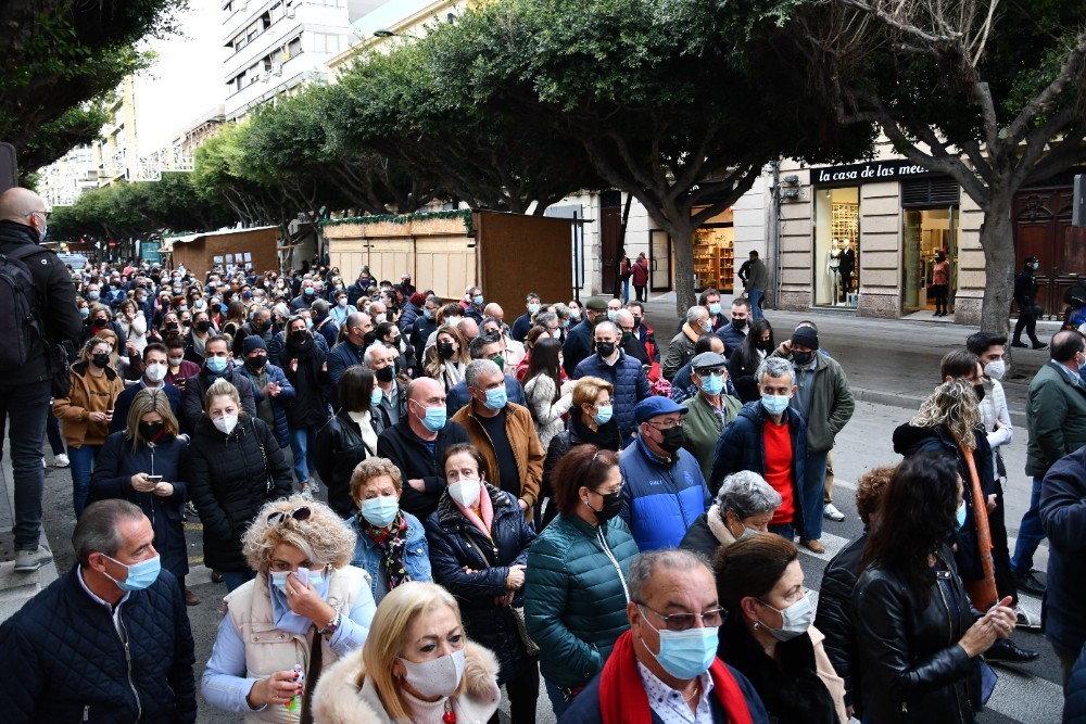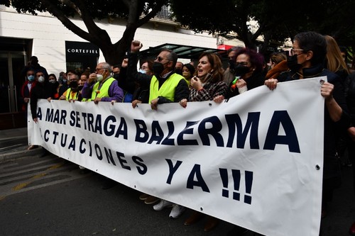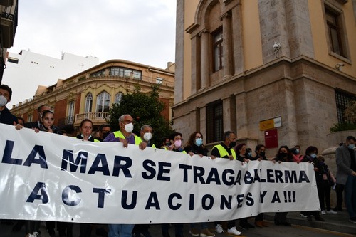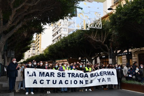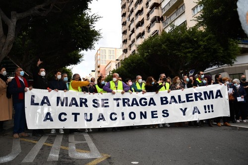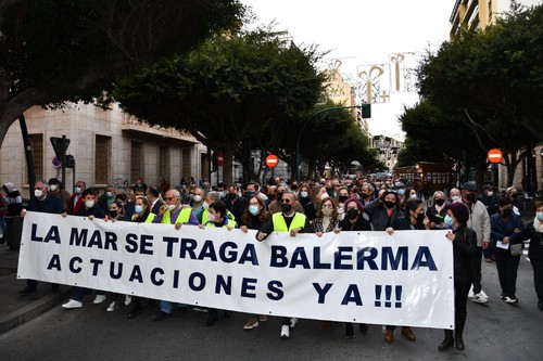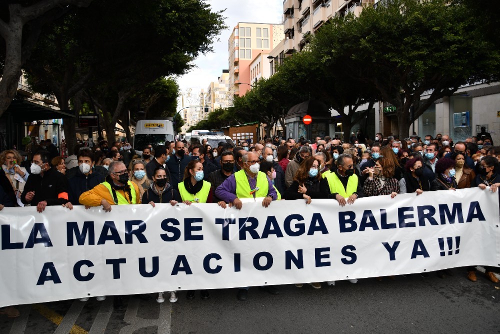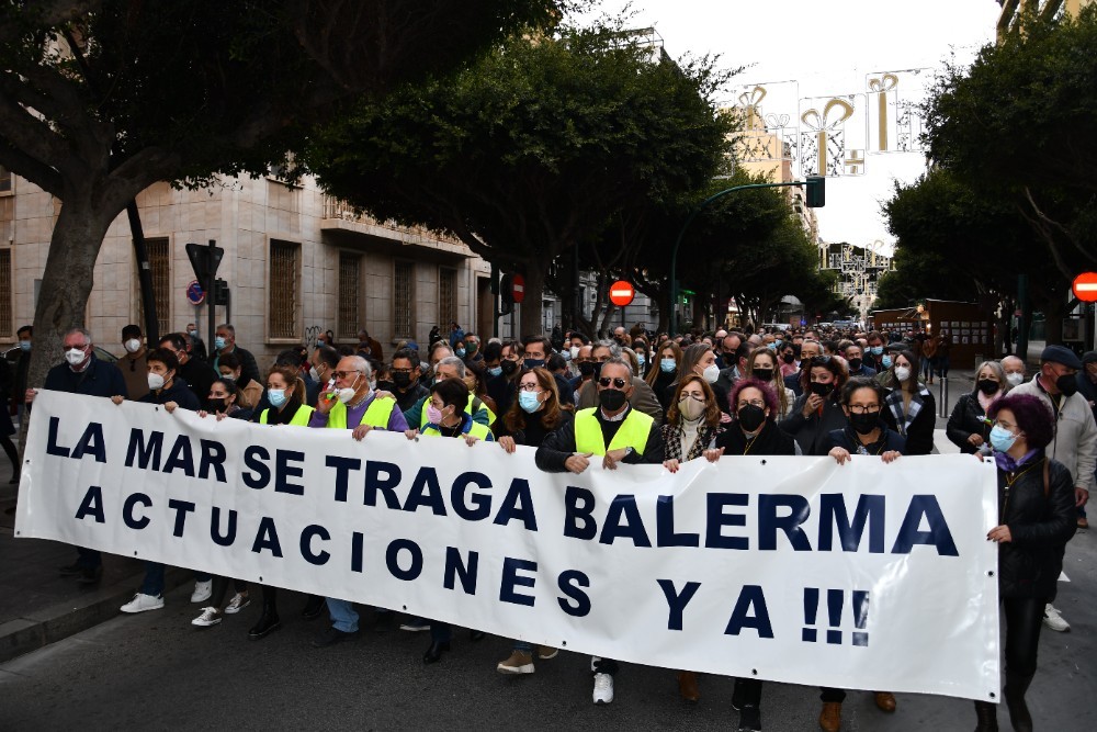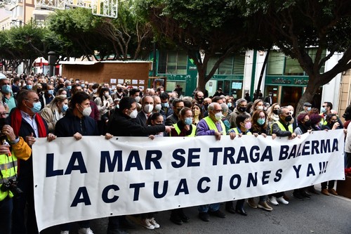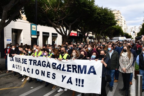 Cientos de vecinos se han concentrado este viernes, 17 de diciembre, a las puertas de la Dirección Provincial de Costas en la capital almeriense con el fin de mostrar su preocupación por el estado del litoral balermero que, año tras año, pierde terreno pese a las aportaciones de arena que realiza la administración de forma periódica. La Mesa de Trabajo por la Estabilización de la Playa de Balerma ha sido el organismo convocante al que se han unido vecinos balermeros, de otros puntos de El Ejido y de la localidad daliense. Los manifestantes, que se han desplazado hasta las puertas de la Subdelegación del Gobierno, para leer un manifiesto donde han urgido a realizar actuaciones definitiva lo antes posible, han estado apoyados por representantes políticos de todos los colores. La concentración finalizaba hora y media después de iniciarse con el emotivo cántico del pasodoble ‘Balerma, Mi mar’, compuesto por Pilar López e interpretado por Curro García y los cientos de asistentes.