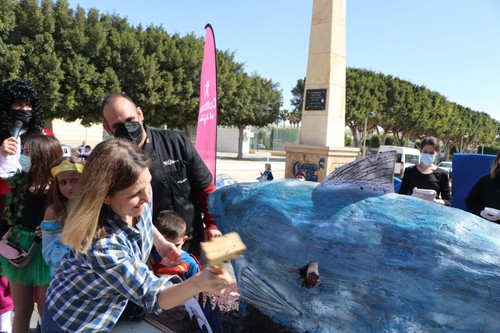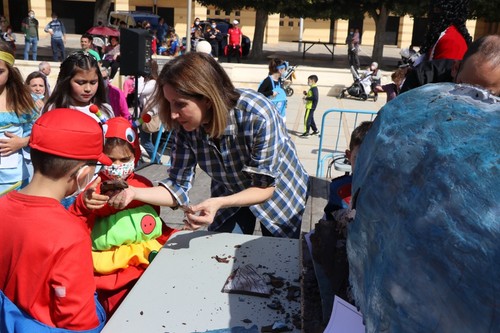 El Parque Municipal de El Ejido se convirtió el sábado, 5 de marzo, en el gran escenario en el que cientos de ejidenses, la mayoría familias, vivieron la festividad del Carnaval de un modo muy especial. La actividad más llamativa ha sido la gran sardina de 120 kilos de chocolate que, elaborada por ‘Chocolates La Virgitana’, se ha repartido entre todos los asistentes en más de 300 raciones.