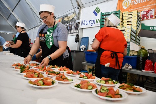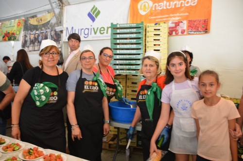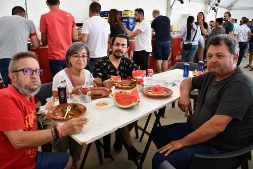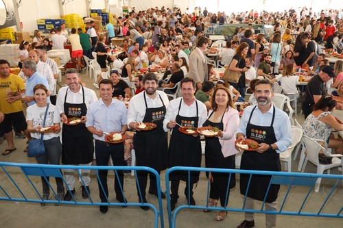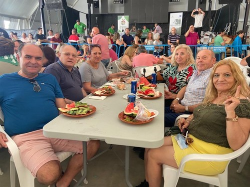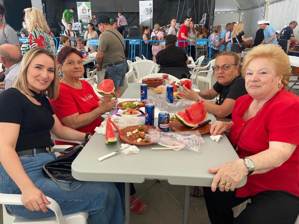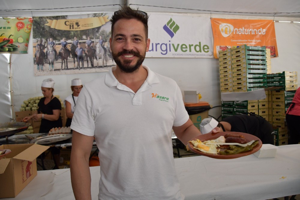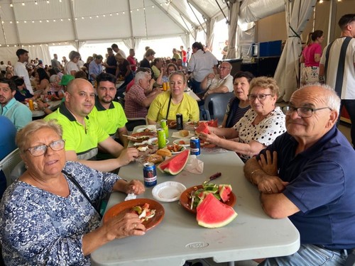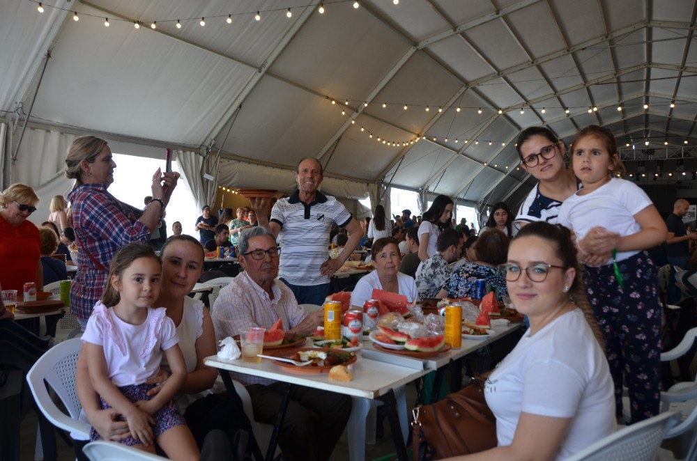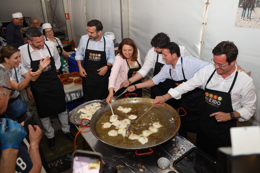 La tradicional degustación de ‘Huevos fritos con chorizo’ de Santa María del Águila, con la que se abren las fiestas patronales de este núcleo ejidense, ha servido este miércoles 3.000 kilos de sandías y 500 kilos de pimientos de los invernaderos de la tierra, además de ofrecer 6.000 huevos, 300 kilos de chorizo y 1.500 kilos de ensalada.