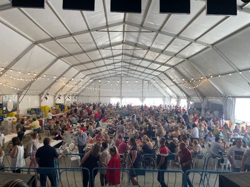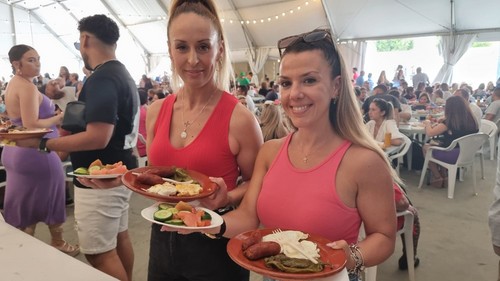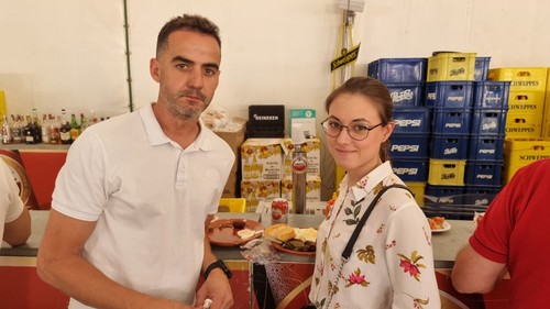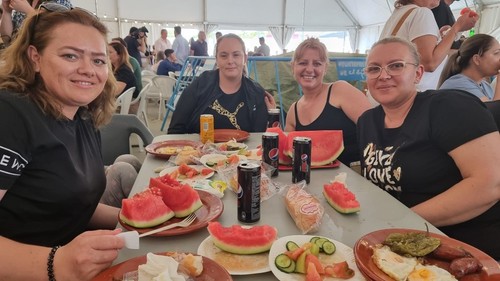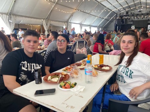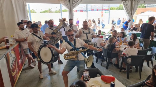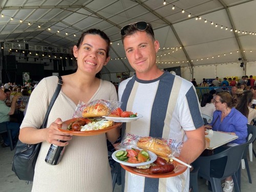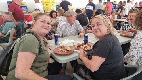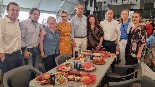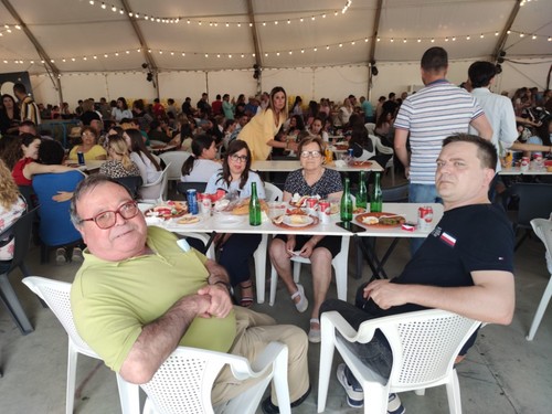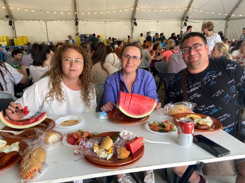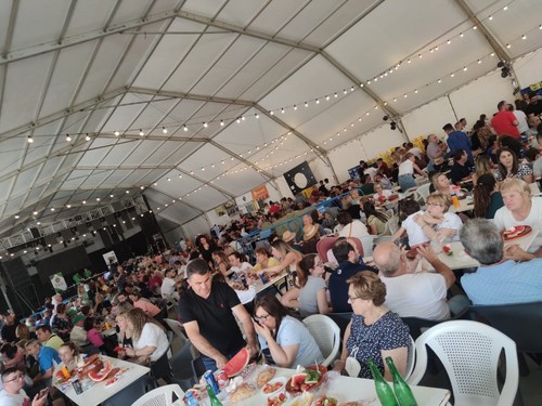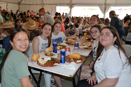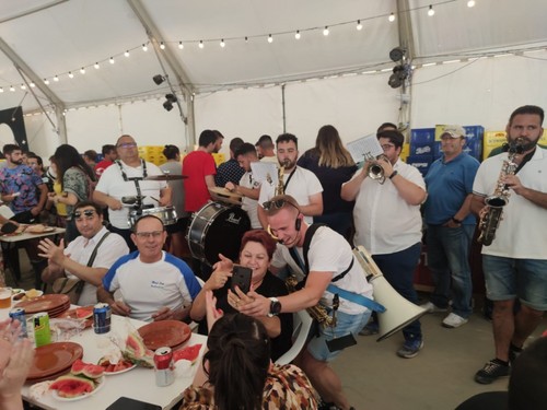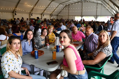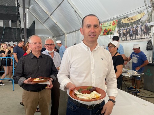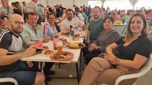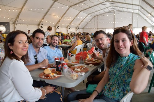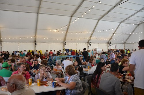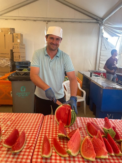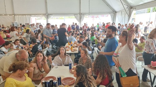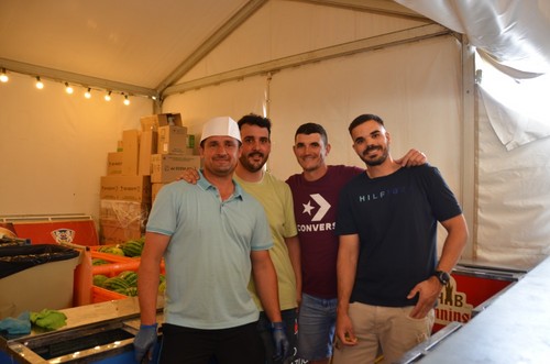 La tradicional degustación de ‘Huevos fritos con chorizo’ de Santa María del Águila, con la que se abren las fiestas patronales de este núcleo ejidense, ha servido este miércoles 3.000 kilos de sandías y 500 kilos de pimientos de los invernaderos de la tierra, además de ofrecer 6.000 huevos, 300 kilos de chorizo y 1.500 kilos de ensalada.