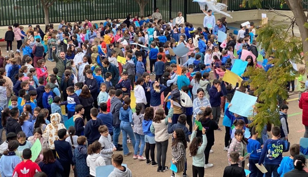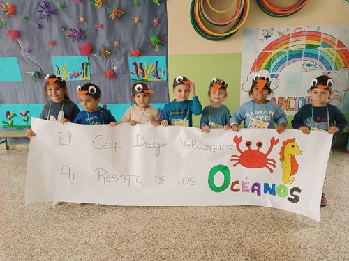 El alumnado del CEIP Diego Velázquez, en El Ejido, celebró el lunes 4 de diciembre una gran manifestación en las instalaciones del centro escolar para concienciar sobre el cambio climático y la importancia de cuidar los océanos. La iniciativa partió del ciclo de Infantil, como tarea final de su situación de aprendizaje ‘Al rescate de los océanos’.