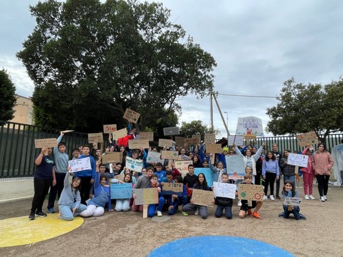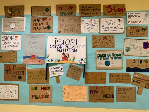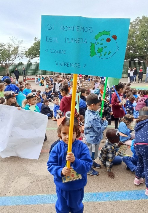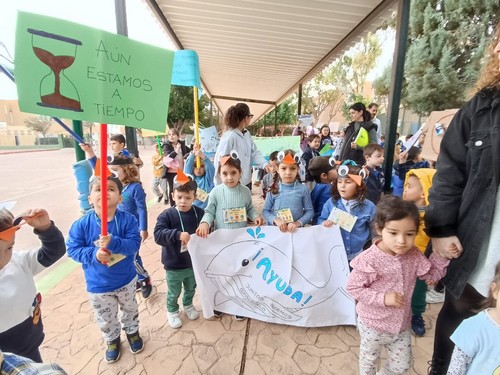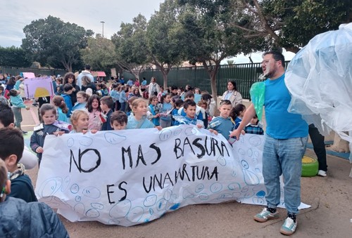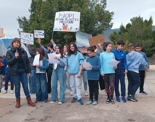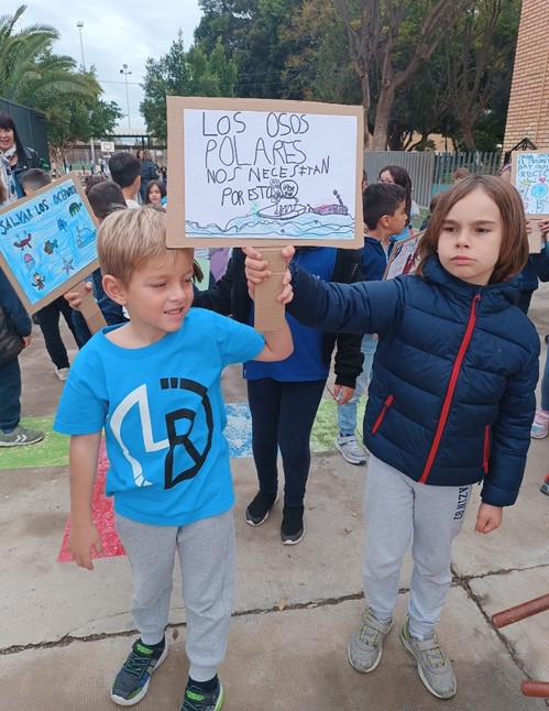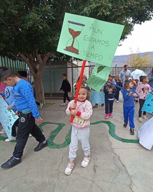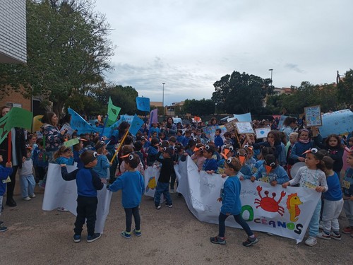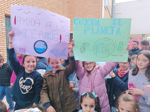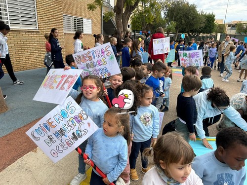 Durante toda la semana previa, pequeños y mayores estuvieron trabajando sobre esta materia y realizaron sus pancartas, acordaron sus consignas y lemas para una manifestación pacífica que convirtió el centro en una ‘marea azul’, ya que los escolares estaban invitados a vestir de este color en la jornada conmemorativa. Alrededor de medio millar de estudiantes recorrieron el centro en manifestación para pedir a las administraciones competentes actuaciones que frenen el cambio climático y, también, concienciar a la sociedad sobre la necesidad de minimizar el uso de plásticos y acabar con los vertidos de basuras a los océanos, que ponen en jaque la supervivencia de distintas especies animales. El acto concluyó con la lectura de un manifiesto por parte de los alumnos de sexto que versó sobre qué pueden hacer los ciudadanos para mejorar el medio ambiente.