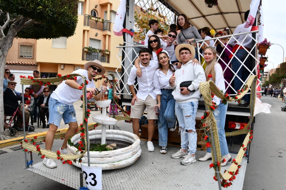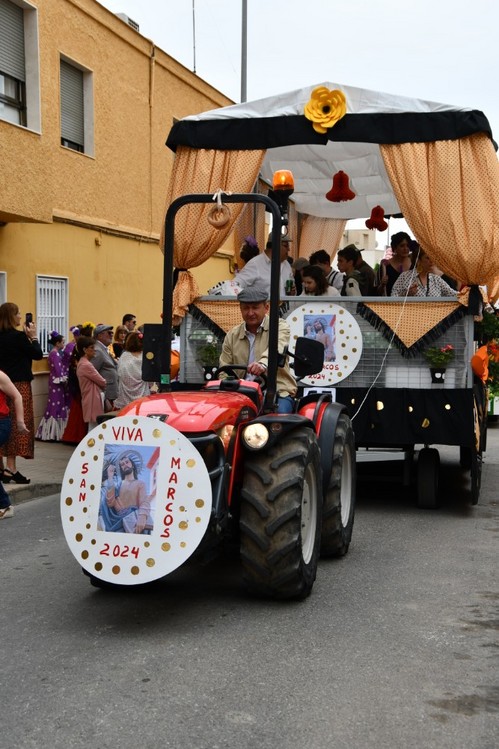 Las calles de El Ejido se vistieron de fiesta este domingo 21 de abril con motivo de la romería-procesión de San Marcos, en la que participaron más de medio centenar de carrozas, además de caballos y carruajes.