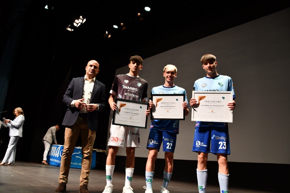 El Teatro Municipal de El Ejido se llenó hasta la bandera en la tarde noche del pasado jueves 2 de mayo para acoger la II Gala de final de temporada que llevó a cabo Inagroup CD El Ejido Fútbol Sala. En ella se entregaron galardones a distintos jugadores del club, de diversas categorías, en reconocimiento por sus logros con la seleccionas de fútbol sala andaluza y española a lo largo de la temporada. Además, el club aprovechó el acto para agradecer a los patrocinadores celestes su colaboración con el club, así como a otras entidades como los medios de comunicación que dan difusión semana tras semana a Inagroup CD El Ejido FS. Durante el acto, el cantante ejidense Kike Gabana deleitó con su actuación a los presentes.