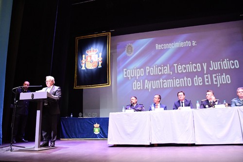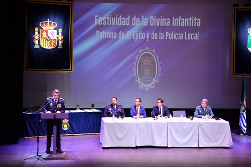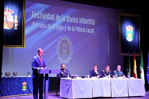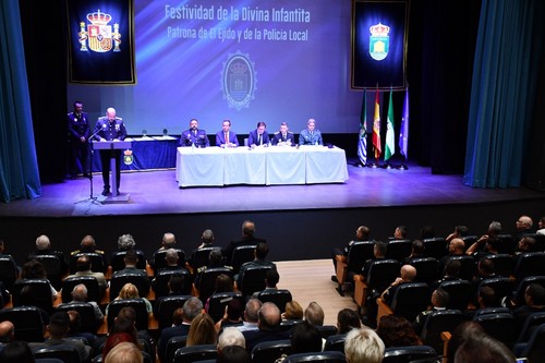 El cuerpo de Policía Local de El Ejido ha celebrado esta mañana el día de su patrona, la Divina Infantita. El acto ha servido para dar reconocimiento a los agentes que han alcanzado la edad de jubilación, así como a efectivos, funcionarios, empresas y personas que han contribuido a la seguridad en el municipio.