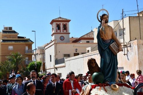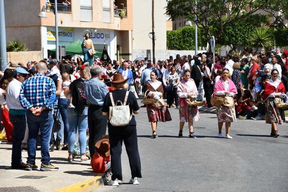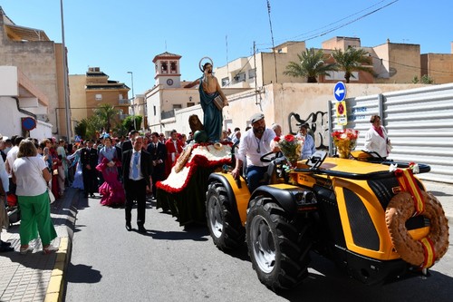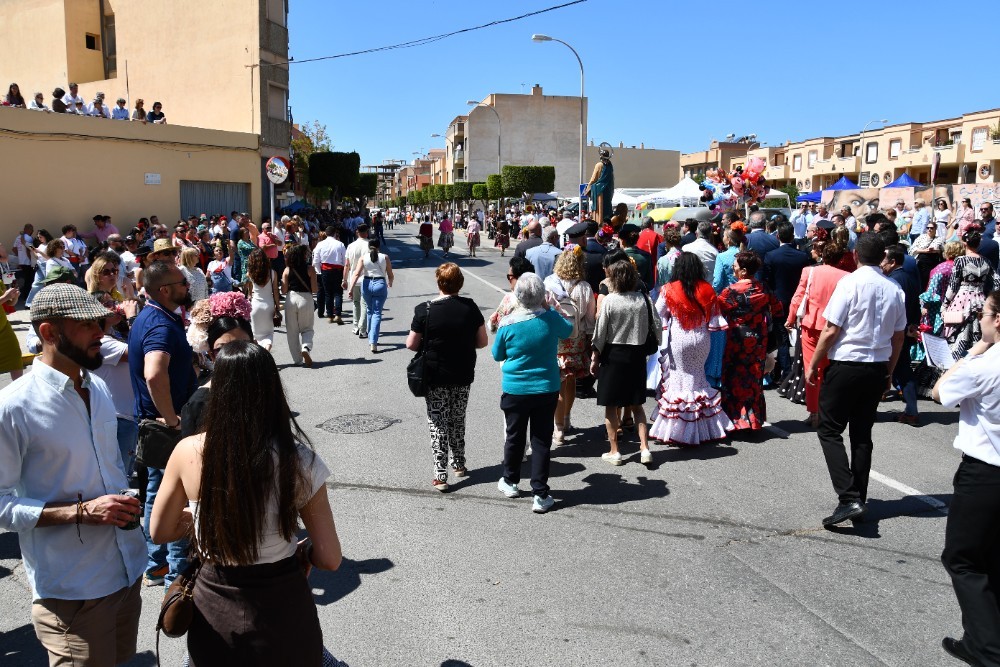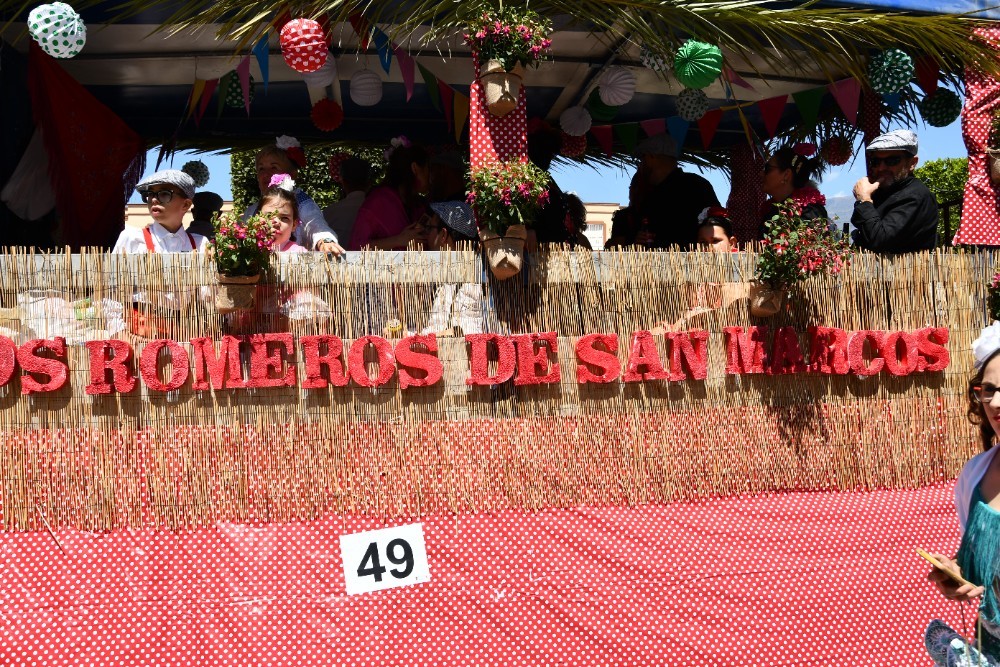 Junto a la imagen de San Marcos, alrededor de un centenar de caballos y 56 carrozas han procesionado este domingo 27 de abril por las principales calles del centro de El Ejido. La romería, que comenzó sobre las once y media y finalizó más allá de las dos de la tarde, contó con la participación de miles de vecinos que se ubicaron a lo largo del recorrido para unirse a esta festividad en la que, tradicionalmente, se pide que haya una buena campaña agrícola.