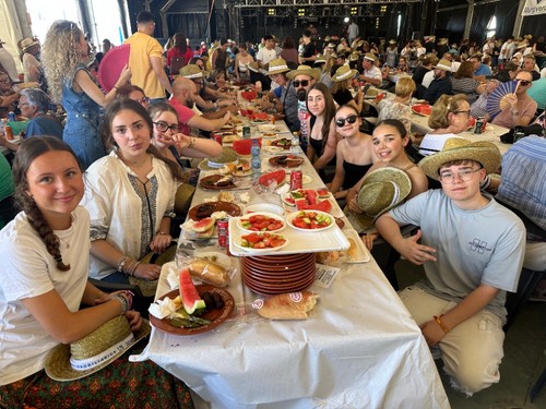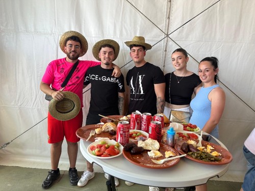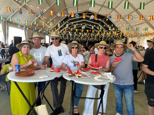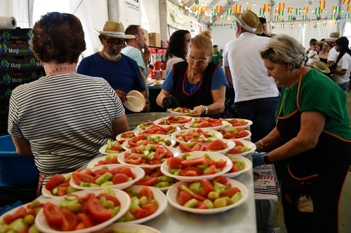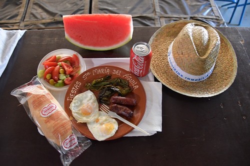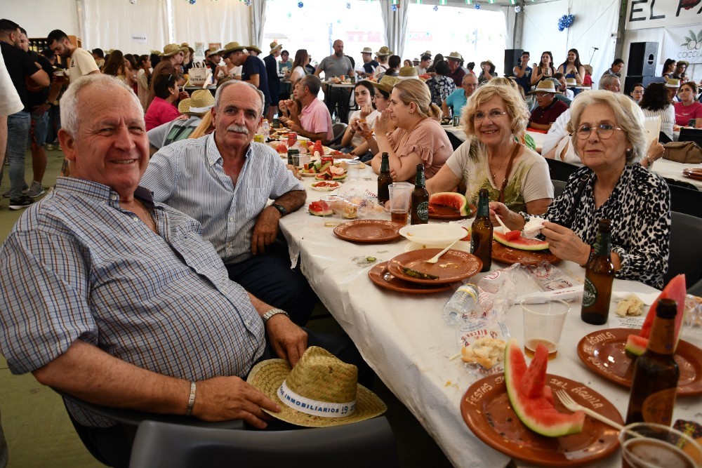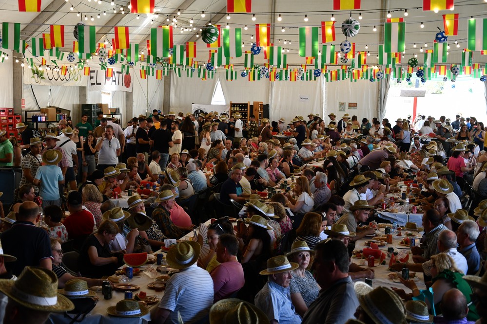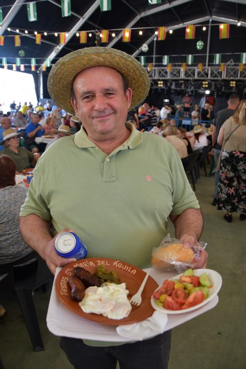 El núcleo de Santa María del Águila ha arrancado este miércoles 21 la celebración de sus fiestas patronales en honor a María Madre de la Iglesia con una de las actividades más populares y concurridas como es la fiesta de los Huevos Fritos con Chorizo. Se han servido más 4.000 huevos fritos los que se han repartido con 4.000 chorizos, 300 kilos de pimientos, 500 kilos de tomates, 500 kilos de pepinos y 1.500 kilos de sandía.
