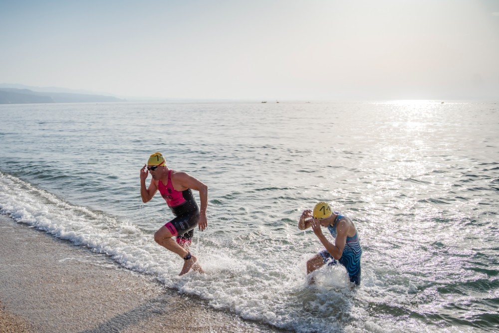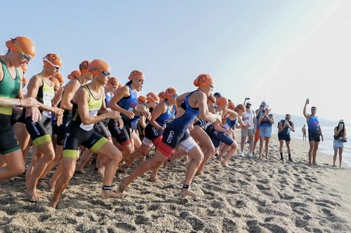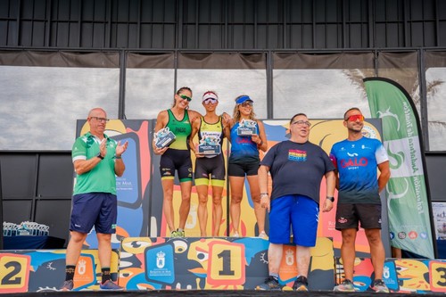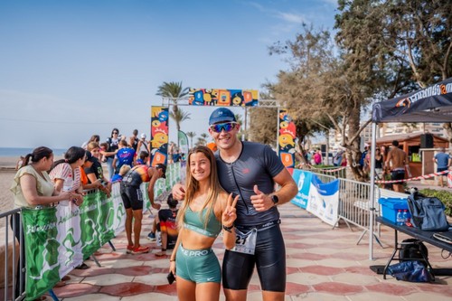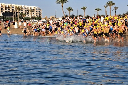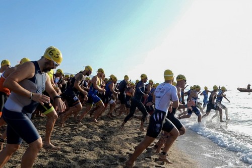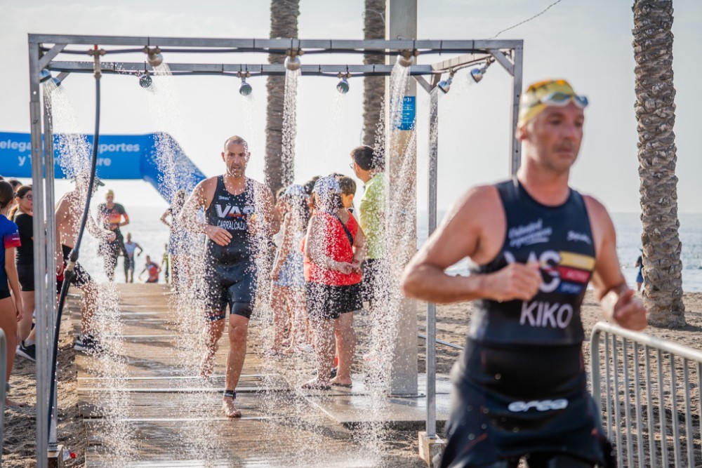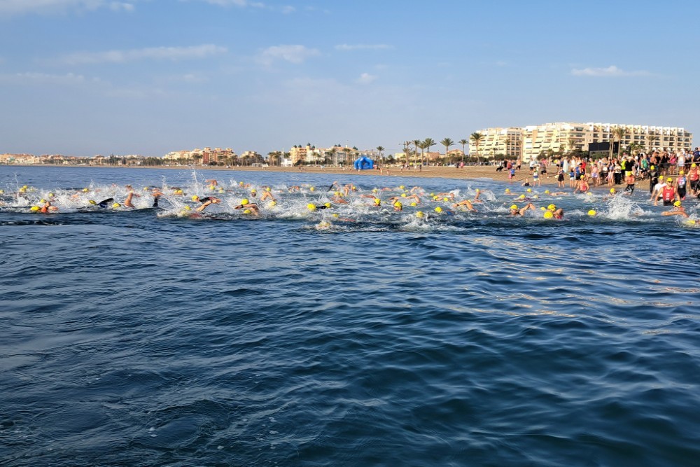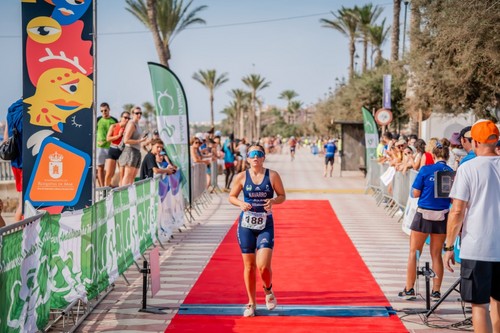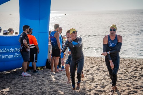 La playa de Las Salinas fue el escenario en el que se ha desarrollado el IX Triatlón Cros Ciudad de Roquetas, tanto la competición de menores como la prueba general superando, entre las dos, los 340 participantes