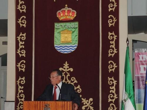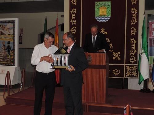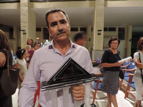 Félix Salinas, recogiendo el premio de la mano del alcalde de El Ejido, Francisco Góngora