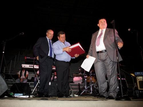 Antonio Carlos Romero entregó la placa al agricultor abderitano Antonio Olivencia Oliva. Los hijos del galardonado recogieron la distinción.