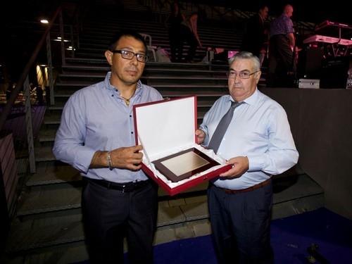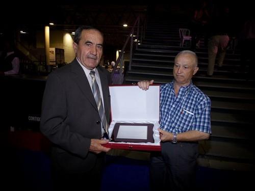 Antonio Gómez Gutiérrez recibió su placa de manos del secretario de Agroiris, José Luque Gómez.
