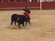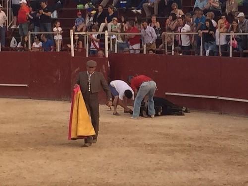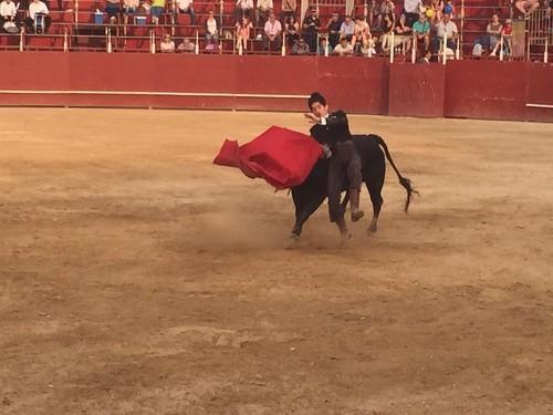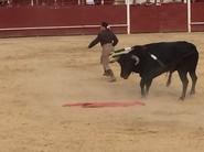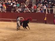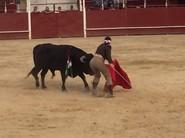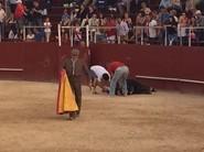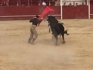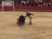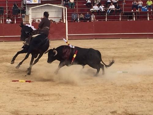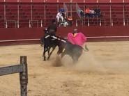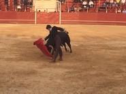 Un recortardo logró controlar al toro después de que éste causara el pánico entre el público.