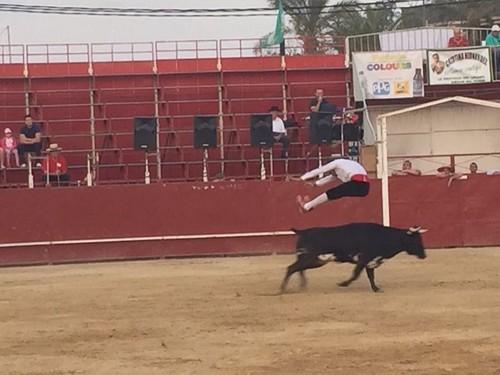 La actuación de los recortadores incluyó saltos tan impactantes como éste.