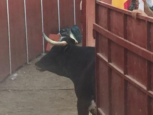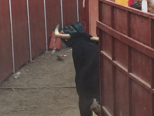 El morlaco se coló en el callejón y provocó el pánico entre los asistentes.