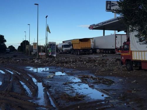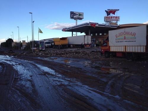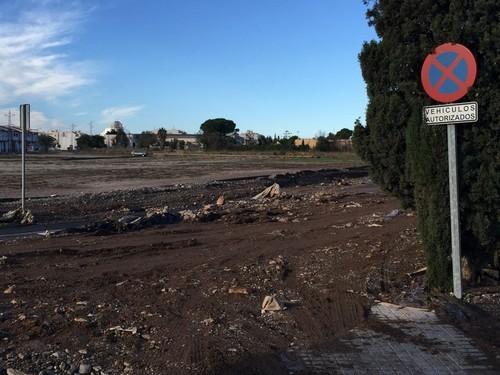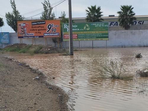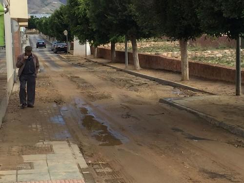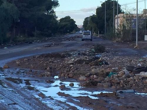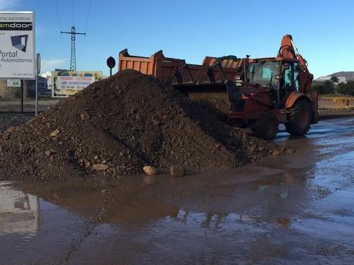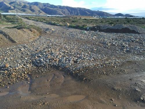 La explanada de Canalex, en el Paraje El 30, fue una vez más el destino de las aguas y el barro que arrastró la rambla que pasa junto al cementerio