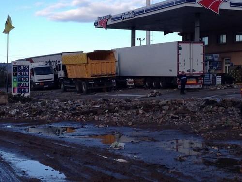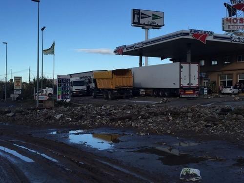 A primeras horas del lunes, los servicios de limpieza estaban quitando la tierra acumulada en la carretera a su paso por la puerta del cementerio