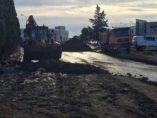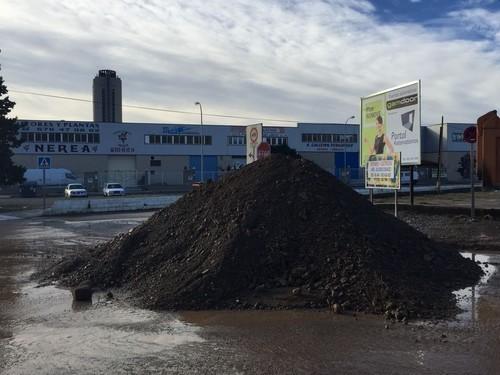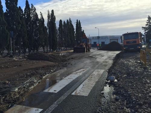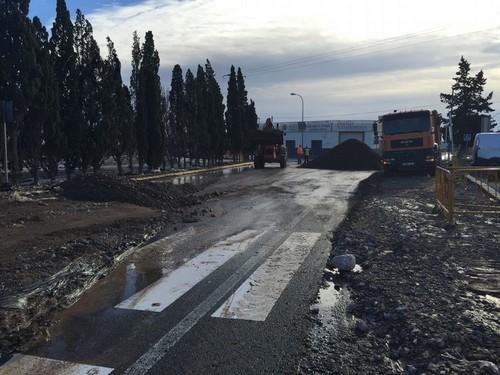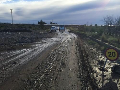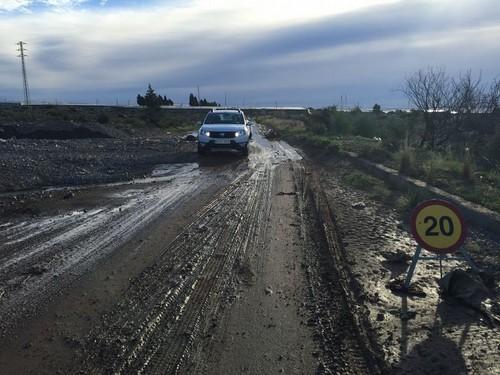 La vía que conduce de Santa María del Águila al polígono quedó seriamente dañada por la tierra que arrastró el agua
