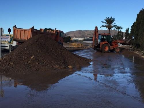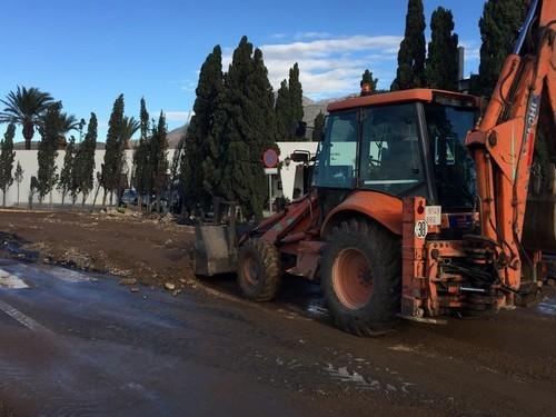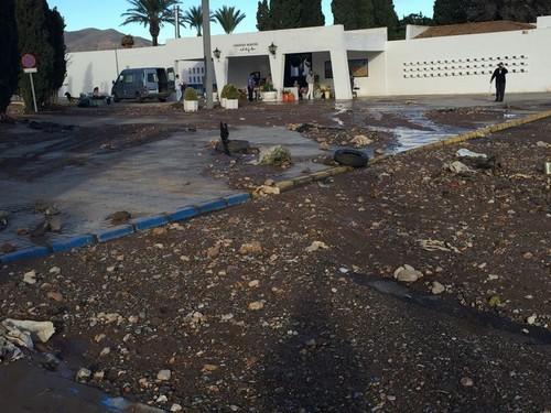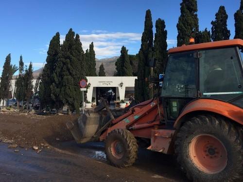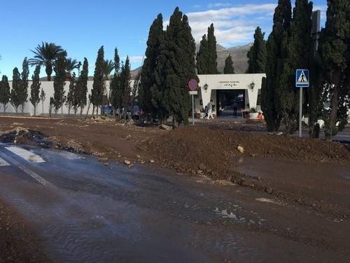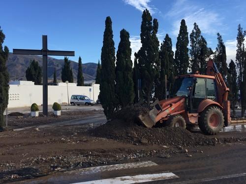 La rambla de Ejido Norte anegó con tierra y barro los accesos al cementerio de El Ejido