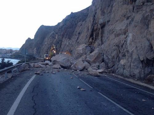 El agua derrumbó la montaña sobre la carretera de El Cañarete