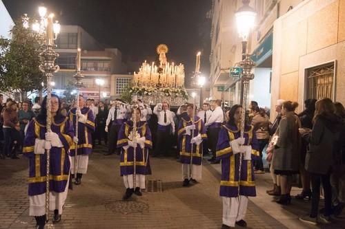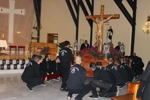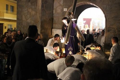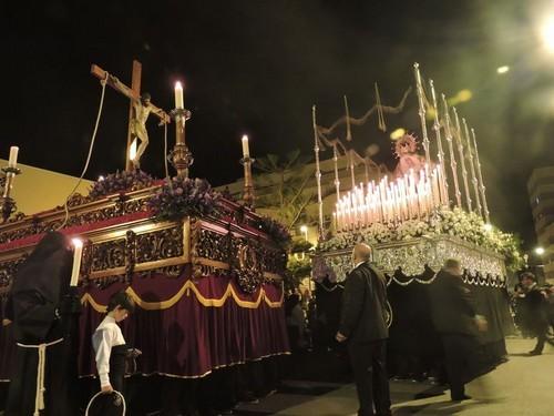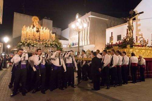 Encuentro, el Jueves Santo, de Nuestro Señor Crucificado en su Divina Misericordia y María Santísima de los Dolores, en Roquetas de Mar.