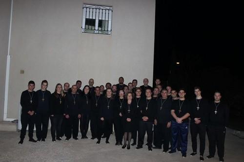 Cuerpo de costaleros del Cristo del Amor de Santo Domingo, minutos antes de su salida procesional, el Jueves Santo. /Rafa Villegas
