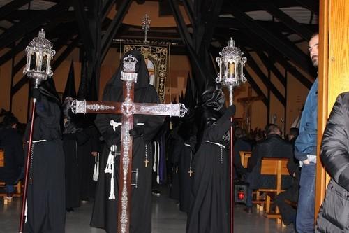 Cruz de guía y penitentes del Cristo del Amor de Santo Domingo de riguroso luto. /Rafa Villegas