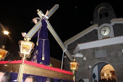 El Nazareno de Balerma comenzando su salida procesional por este núcleo de población ejidense. /Rafa Villegas
