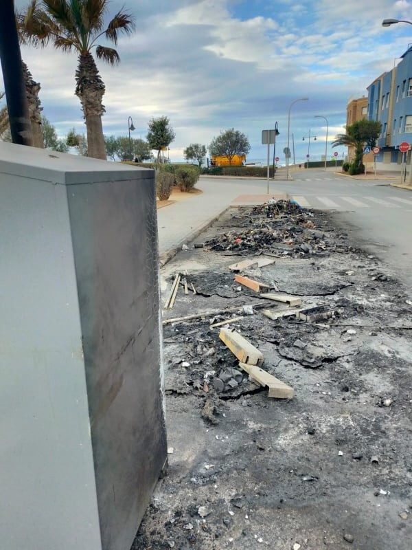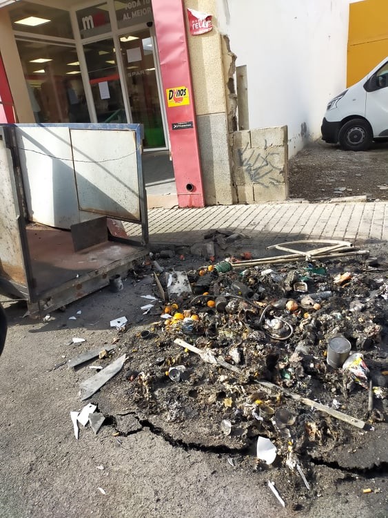 En concreto, se quemaron cuatro contenedores en la Rambla del Sentir, próximos al paseo marítimo, y otros tres situados en la calle Princesa Sofía, junto a varios negocios. Este último también afectó a un remolque y a un pub cercano, que ha sufrido daños en su fachada.