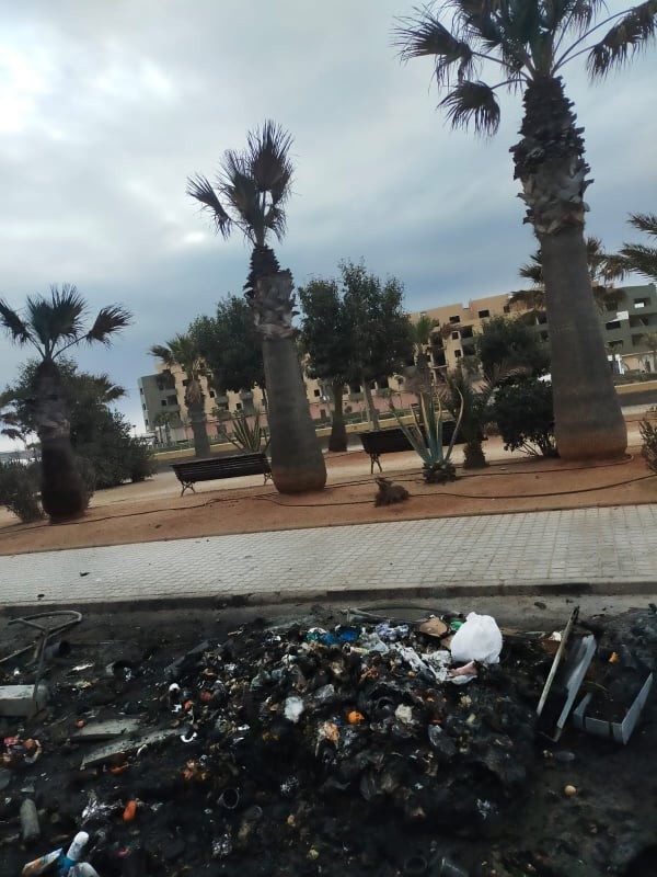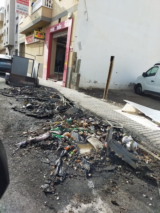 Operarios del Ayuntamiento de El Ejido ya han recogido los restos de los incendios y sustituido los contenedores quemados por otros.