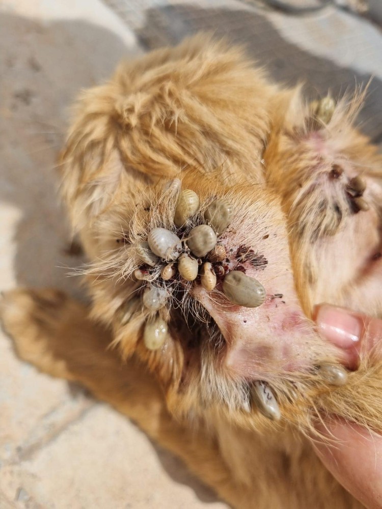 Tras recogerlas, los animalistas las trasladaron a una casa de acogida, donde procedieron a desparasitarlas, ya que estaban totalmente cubiertas por "cientos de pulgas y garrapatas, llegó un punto en el que dejamos de contarlas". Afortunadamente, los parásitos no llegaron a infectarlas con ninguna enfermedad, como la parvovirosis o la erlichia, tal y como reflejaron las pruebas veterinarias a las que tuvieron que se tuvieron que someter.