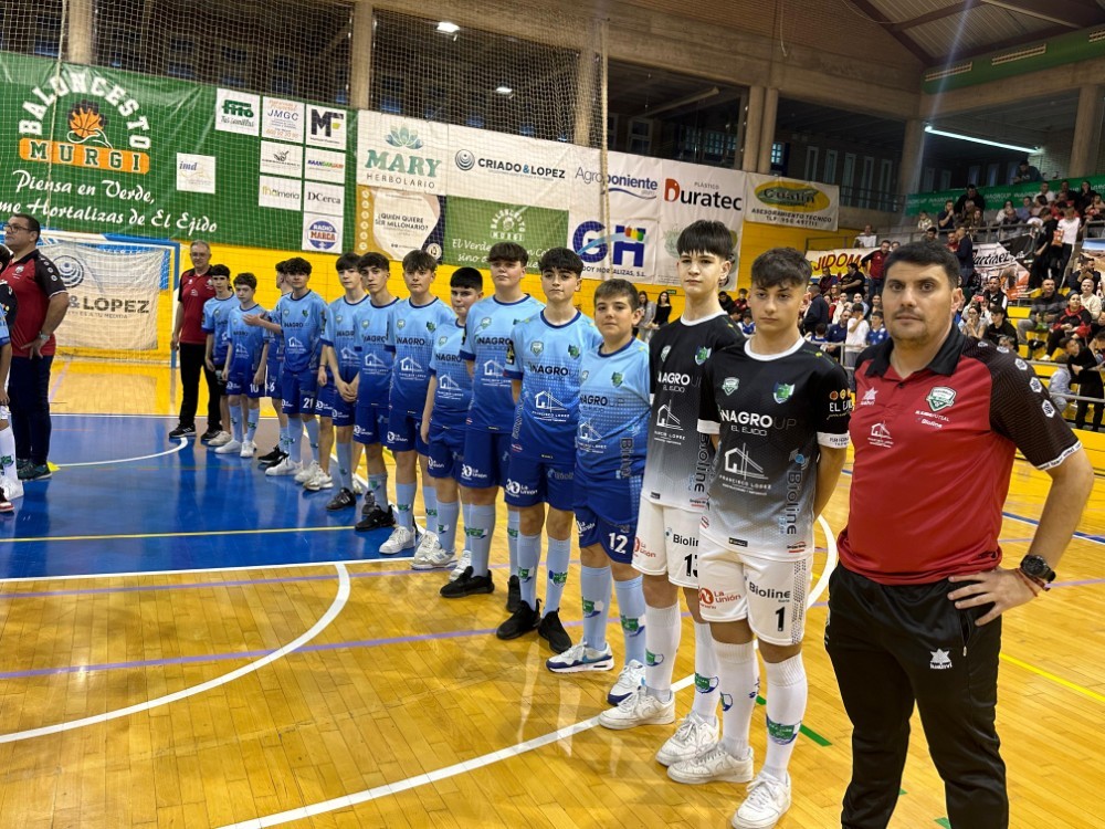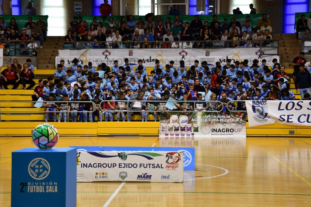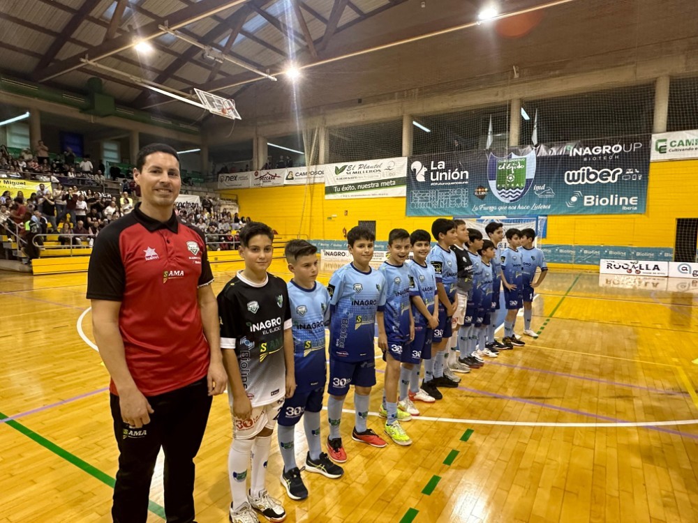 En el descanso del encuentro del sábado, el CD El Ejido FS presentó a los equipos de sus bases, desde prebenjamín hasta juvenil